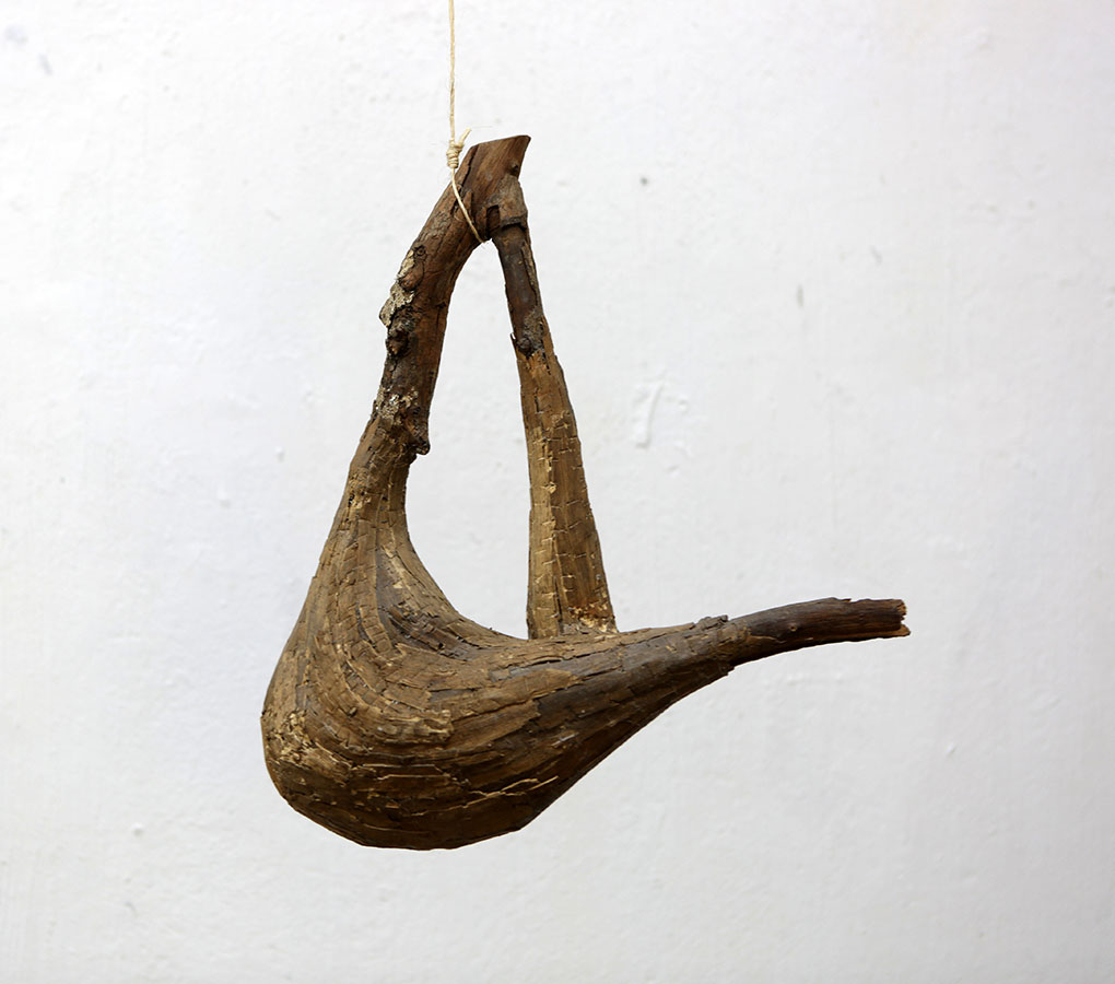 Chassi | 2019 | tree branches, barks, wire mesh, pasteboard, plywood and glue