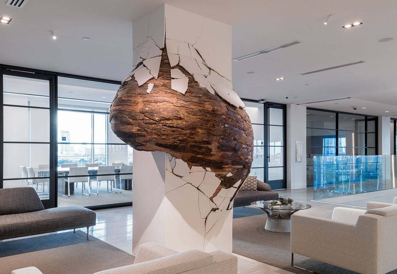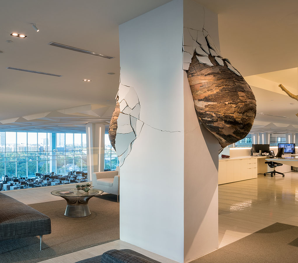 Irruption | 2015 | private collection, Houston-TX, USA | plywood, bark and drywall | photo: Nash Baker